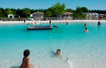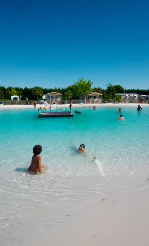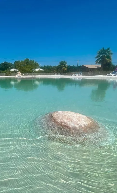 Notre lagon artificiel avec plage de sable fin est l’un des atouts majeurs de notre camping 4 étoiles. Conçu pour allier détente, confort et respect de l’environnement, il offre à nos vacanciers une alternative idéale à la piscine traditionnelle. Avec son eau limpide, ses zones ombragées et ses aménagements pensés pour toute la famille, le lagon du Pô Doré invite au farniente, à la baignade et aux jeux en plein air.