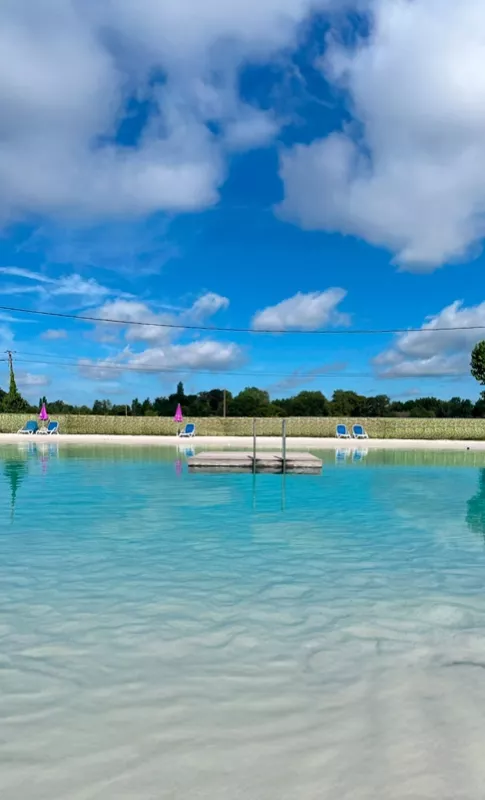 Parcourez la galerie photo du lagon du Camping Le Pô Doré, situé à Saumur, en Maine-et-Loire, et découvrez un espace unique de baignade naturelle.